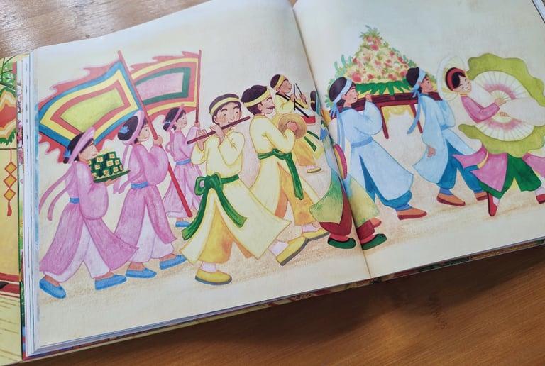 I illustrated the article "Le Mat Village and the Giao Long Dance" written by Pham Ngoc Lan, which was released in January 2025 by Kim Dong Publishing.