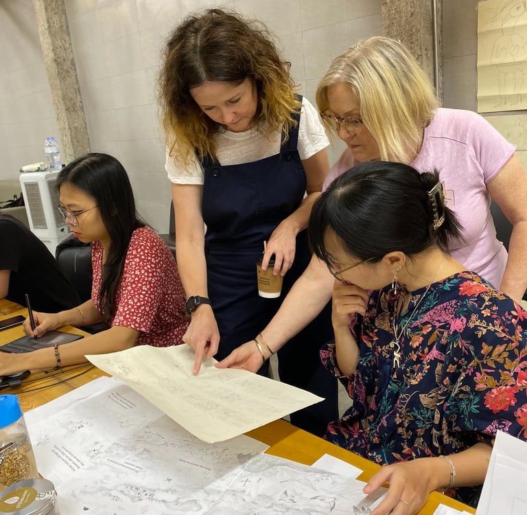 The project is part of a scholarship provided by the British Council in 2023, where I receive one-on-one mentoring from art director Jane Buckley and illustrator Jan Fearnley. I also have the opportunity to collaborate with other Vietnamese illustrators and Nha Nam publishing houses. Our artworks were displayed in exhibitions at The Royal Over-Seas League London and Manchester School of Art’s Vertical Gallery.